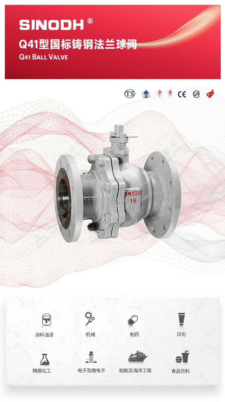 Q41型国标铸钢法兰球阀,为乐鱼web版·网站页面-乐鱼(中国)自主研发生产。本产品设计制造标准符合GB/T12237、GB/T12224标准。该产品的球体在介质压力作用下球体能产生一定的位移并紧压在出口端的密封面上,保证出口端密封。适用于水、溶剂、酸和天然气等一般工业介质也适用于工况恶劣的介质,如氧气、过氧化氢、甲烷和乙烯等介质。